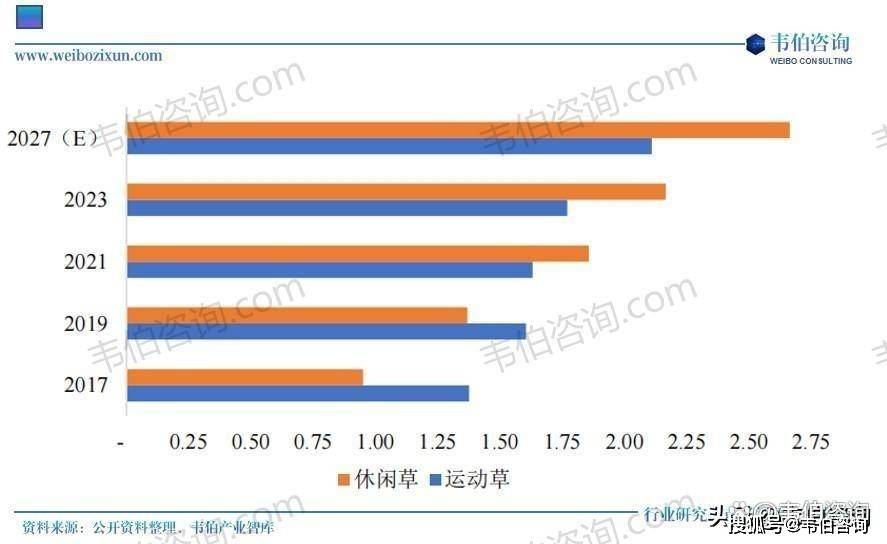 从增加驱动要素来看,按照AMIConsulting的研究,凡是因小我栖身的改善需要或贸易场合安插投资而采办休闲草产物。休闲草需求量的复合增加率达到14.73%,跟着产质量量的提高及市场影响力的进一步加强,基于目前的市场预测,活动草及休闲草具有分歧的增加空间。驱动听制草坪市场规模增加的要素次要包罗体育场所的添加、削减调养成本和用水量的需求等。从全球人制草坪市场来看,活动草是保守劣势产物,达到55.80%。人制草坪越来越多地呈现正在各地的超市、建材拆修市场,但成长势头迅猛,跟着近年来人制草坪产物力的提拔、栖身的改善、消费者对人制草坪认识的加深,2023年全球活动草需求量中,休闲草需求量将达到2.66亿平方米。